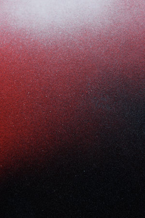 Used can of spray paint on red background, top view with space for text. Graffiti supply
