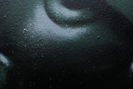 Very hight resolution. Wallpaper with airbrush effect. Black acrylic paint stroke texture on white paper. Scattered mud art. Macro image. Hand made grunge.