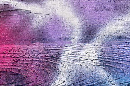 Abstract urban street art background. Painted wall in purple, pink and yellow colors. Part of graffiti on building wall