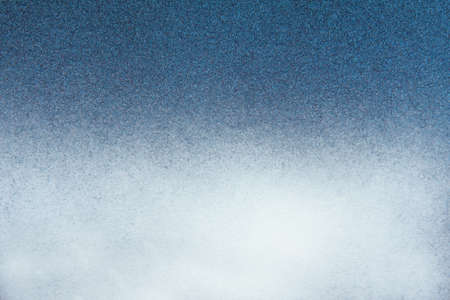 Some used blue aerosol spray cans with paint drips lies on a blanket of soft and furry light blue fleece fabric. Classic female design color. Graffiti hooliganism concept