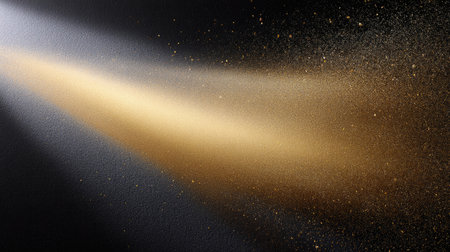 This abstract image captures a golden light beam dispersing particles against a dark background, providing a magical and stylish visual for various creative endeavors.