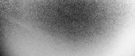 A black and white textured background featuring a speckled pattern created by spray paint. The texture is granular and uneven, with a gradient from lighter tones on the left to darker tones on the right. Small white dots and larger dark splotches are distributed across the surface.