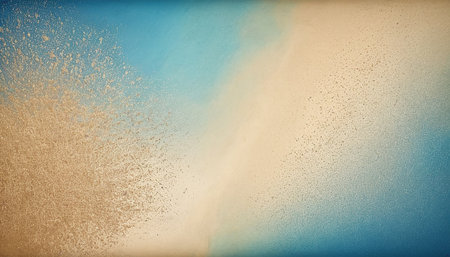 Golden and blue glitter texture flying on black background