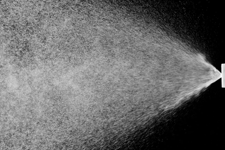 An image of water as it it sprayed out of the nozzle of a spray bottle