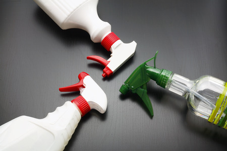 Spray bottle of disinfectant household cleaners.