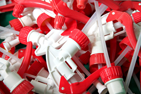 Closeup of Spray bottle nozzle - cleaning theme banner.