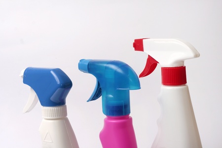 Three cleaning spray bottles isolated on white background
