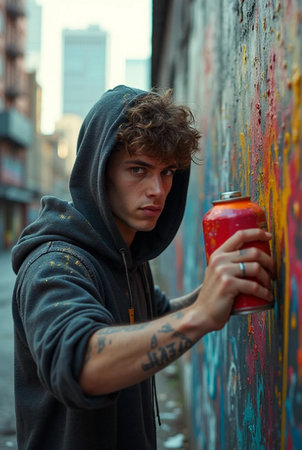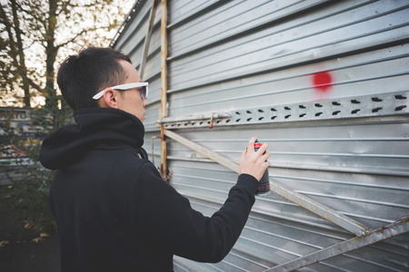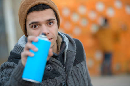 young graffiti artist with spray paint