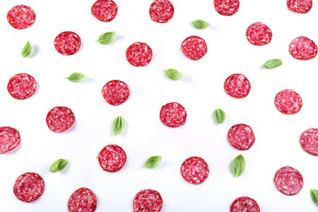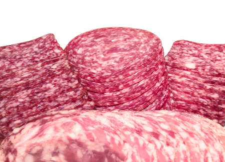 set of sliced salami sausage isolated on a white background