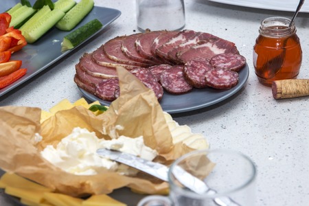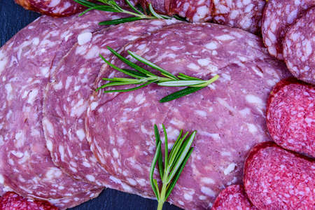 thinly sliced salami . delicious snack rustic salami.