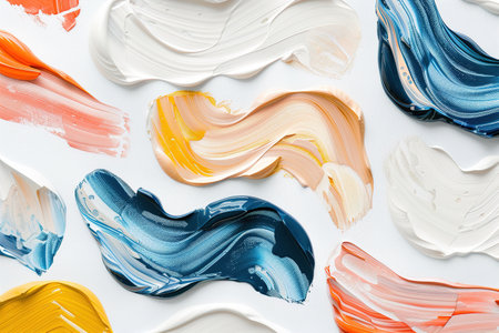 Colorful brush strokes arranged neatly on a white surface, showing artistic creativity and texture.