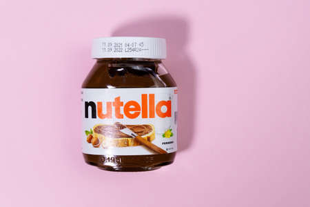 Tyumen, Russia-October 15, 2021: Nutella is the brand name of a chocolate hazelnut. Manufactured by the Italian company Ferrero.