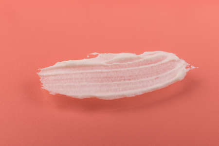White smear of cosmetic cream isolated on pink background. Creamy foundation texture. Smear of face cream. Texture of cream background