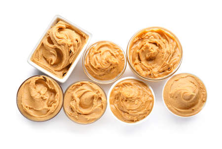 Directly above shot of open face peanut butter and jelly sandwich in plate on white background. unaltered, peanut butter and jelly sandwich, healthy food, preserves, preparation and breakfast.