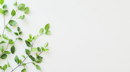 Green Leaves on White Background, Minimalist Natural Concept With Copy Space For Text