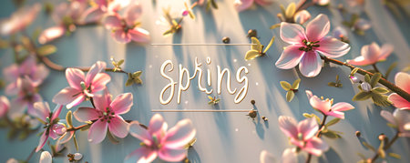 Hello spring floral banner with blossoming flowers and leaves. That the image is generated using AI.