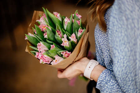 Bouquet of tulips in hands