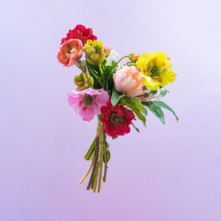 Colorful flower bouquet. Minimal modern creative Valentines or woman's day concept. Retro style new vintage.