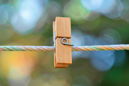 wooden clothespin on a clothesline