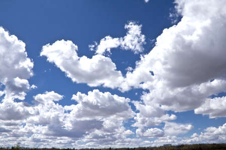Fluffy cumulus clouds on a blue sky background