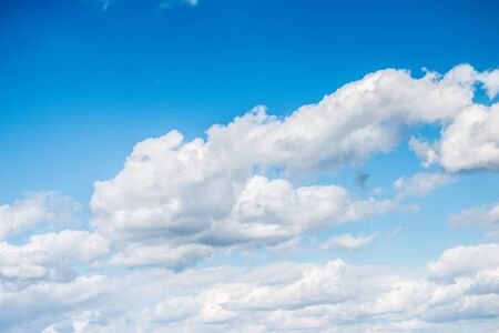 Blue sky background with white clouds. Cumulus white clouds in the blue sky.
