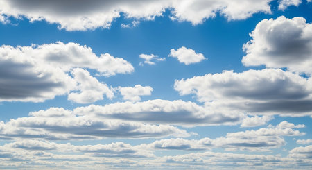 Expansive blue sky filled with fluffy white clouds, creating serene and tranquil atmosphere, showcasing beauty of nature and vastness of open sky during sunny day Banner Panorama