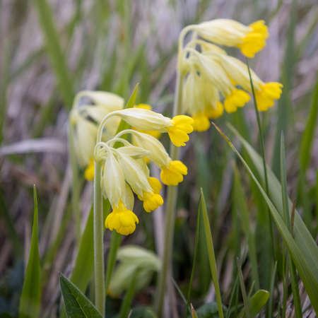 Cowslip flowers (Primula veris) on a spring meadow, close-up, selective focus