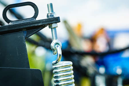 steel spring for a swing. the idea is garden furniture. constituent structures, parts and fittings. empty space for text, banner