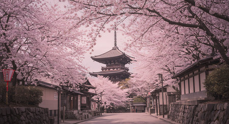 Cherry blossoms and pagoda in Chiyoda, Kyoto, Japan