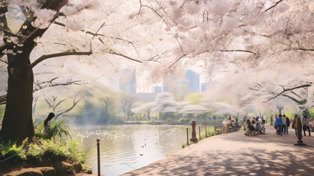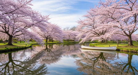 In the embrace of spring, delicate cherry blossoms bloom in a delicate cascade of pink and white, their tender petals a symbol of hope and new beginnings, a timeless expression of natures resilience.. AI generated.