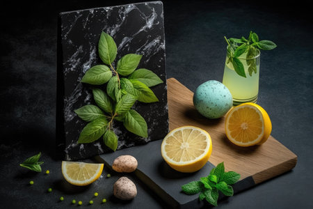 The lemon and mint that make up a refreshing mojito in the summer. Citrus and peppermint served atop a black slate