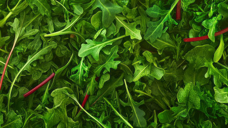 Fresh vibrant arugula and greens close-up for healthy eating design