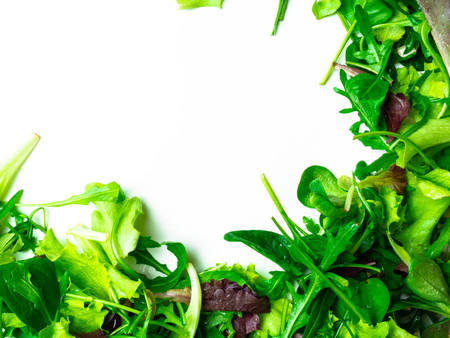 Mixed green Salad, isolated on white, copy space, vitamin and fibre rich greenery
