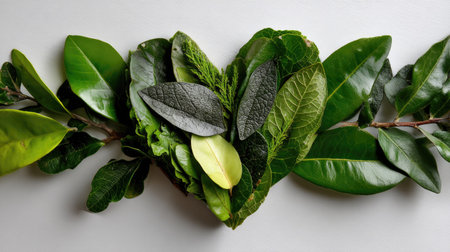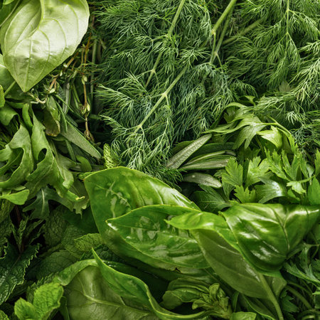 This image showcases a rich tapestry of green leaves, featuring fresh culinary herbs. Ideal for themes of health, gardening, and nature, it brings a vibrant touch to any design.