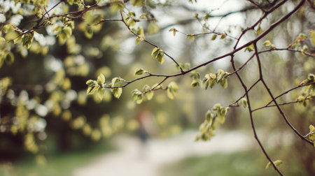 A person walks along a path in a park surrounded by fresh green leaves during springtime, highlighting an active outdoor lifestyle.