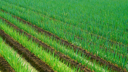 Agricultural field with onion in spring