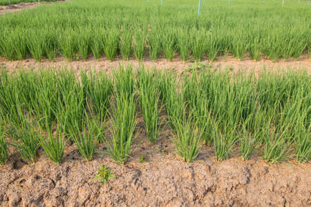 Green shallot growth in farmland(Allium ascalonicum),vegetable garden farmland in Northeast of Thailand.