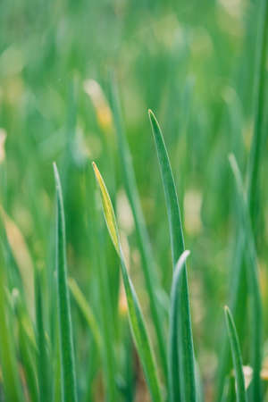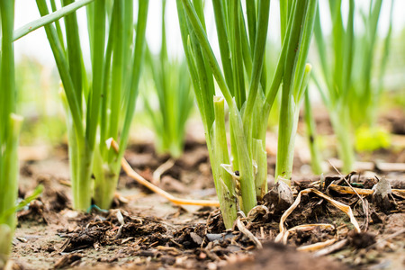 Young green onion in the garden.