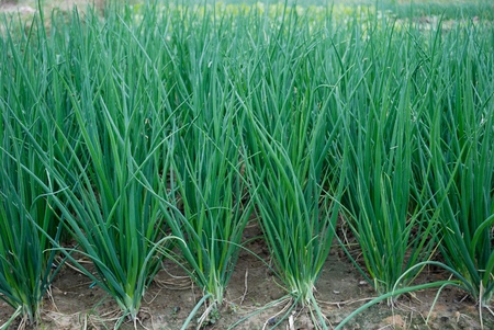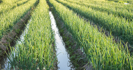 Onion plantation in the vegetable garden