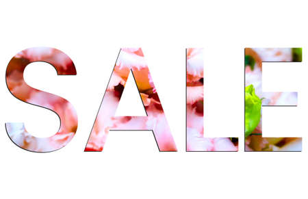 Sale poster on white backdrop. Isolated market special offer discount for spring and summer sale. Lettering design for best offer. Shopping, offer, discount background.