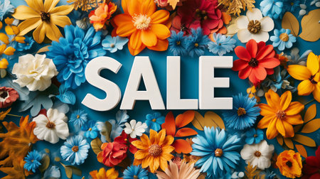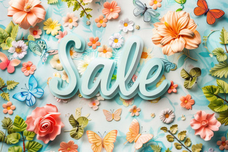 Illustrative and colorful SALE sign with butterflies and flowers, ideal for seasonal promotions AI