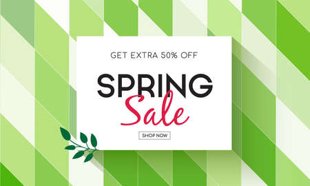 Spring sale banner with green rhombus pattern background. Spring sale Vector illustration.