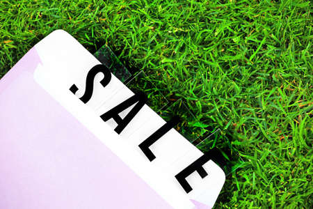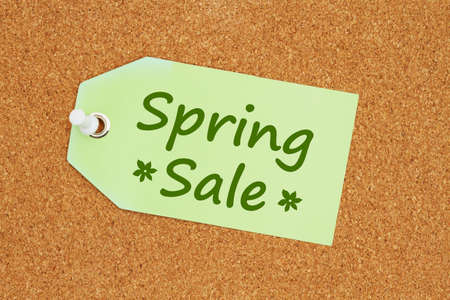 Spring Sale green gift tag on a bulletin board for your gift ideas or sale message