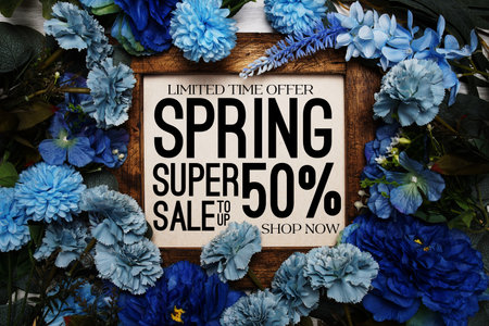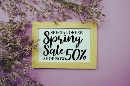 Spring Sale 50% off Promotion Offer Discount Retail Shopping Concept