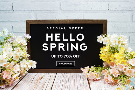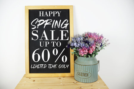 Spring Sale 60% Promotion and Marketing with easel with flowers bouquet decoration