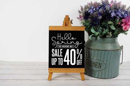 Spring Sale 40% Promotion and Marketing with easel with flowers bouquet decoration