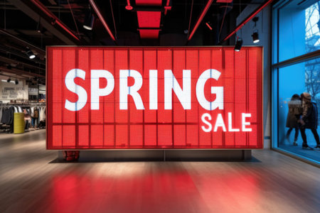 An image of a minimalist store design with an eye-catching SPRING SALE sign in bold white letters on a vivid red background
