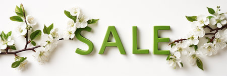 The word SALE made of blooming tree branches. Cherry blossoms forming sign Sale, discount symbol. Spring sale card for social media promotion. Black Friday sale, shopping season banner.