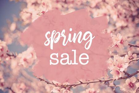 Shopping Spring Sale Text on Pink Flowers Blooming Tree