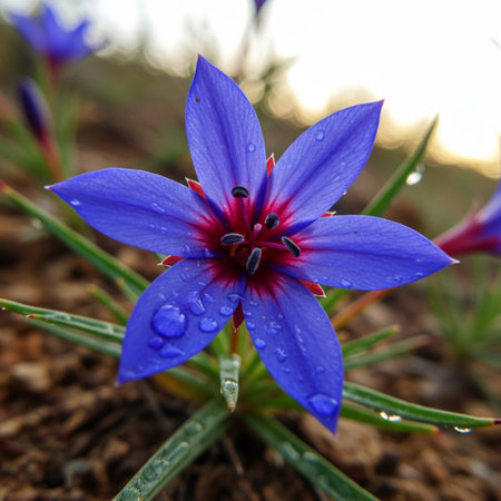Blue-Eyed Grass Flower Beautifully Bloomed. Created by Generative AI Technology.